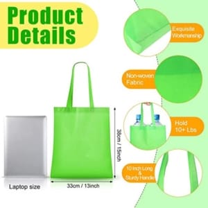 Nuestras bolsas de asas reutilizables están fabricadas con ligeras y avanzadas telas no tejidas de polipropileno, que son duraderas y resistentes al desgaste. Las puntadas en forma de "X" en la parte de la articulación hacen que las asas largas sean lo bastante fuertes como para sujetar muchos objetos sin que se rompan.